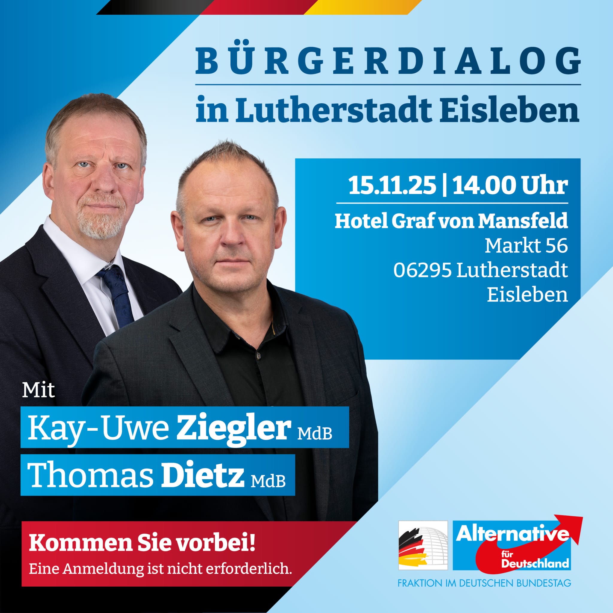 Marktplatz Bitterfeld Sachsen-AnhaltWir heißen euch herzlich willkommen zum Spaziergang und anschließender Kundgebung auf dem Markt in Bitterfeld! Am 05. Mai um 18 Uhr startet unser Spaziergang mit anschließender Kundgebung um 19Uhr. Es erwarten euch unsere gewählten Direktkandidaten Volker Scheurell MdB, René Springer MdB und Kay-Uwe Ziegler MdB sowie Daniel Roi MdL. Wann? 05.Mai 2025 18 Uhr Wo? [...]